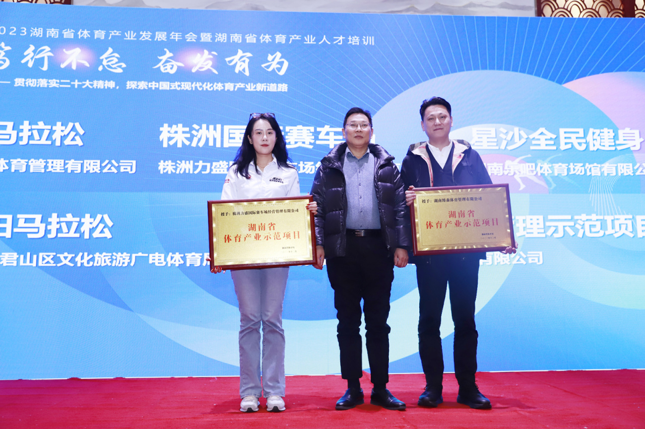15日上午,2023年湖南省產(chǎn)業(yè)發(fā)展年會(huì)暨湖南省體育產(chǎn)業(yè)人才培訓(xùn)在長(zhǎng)沙華天大酒店召開。我司運(yùn)營的IP項(xiàng)目-湘江馬拉松賽榮獲2023湖南省體育產(chǎn)業(yè)示范項(xiàng)目并獲得授牌。